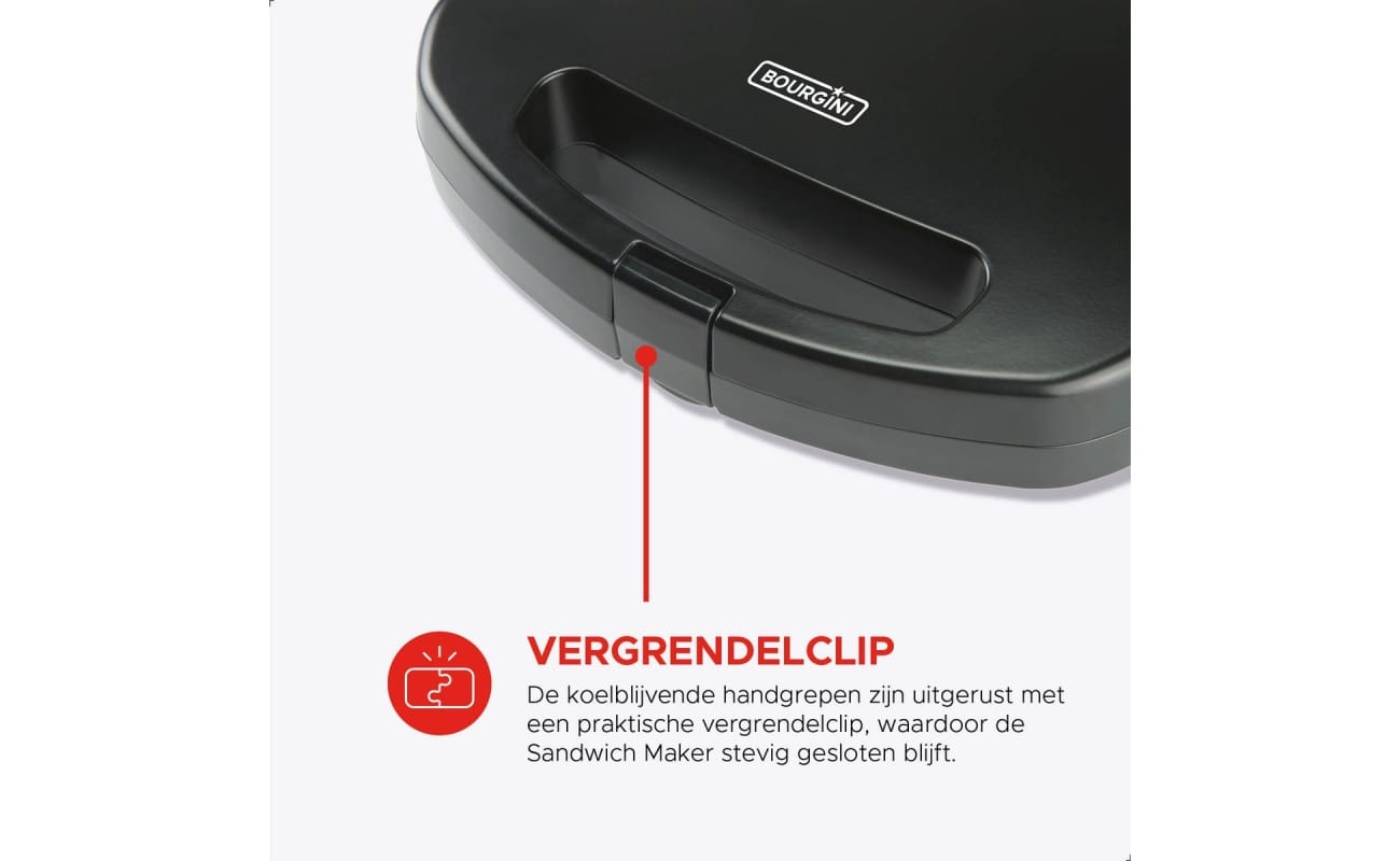 De Bourgini Sandwich Maker XXL Black is perfect voor het bereiden van heerlijke tosti’s en sandwiches. Dankzij de extra grote sandwichplaten, die 60% groter zijn dan bij standaard apparaten, passen zelfs grote boterhammen gemakkelijk in deze machine. Hij beschikt over een thermostaat en oververhittingsbeveiliging.