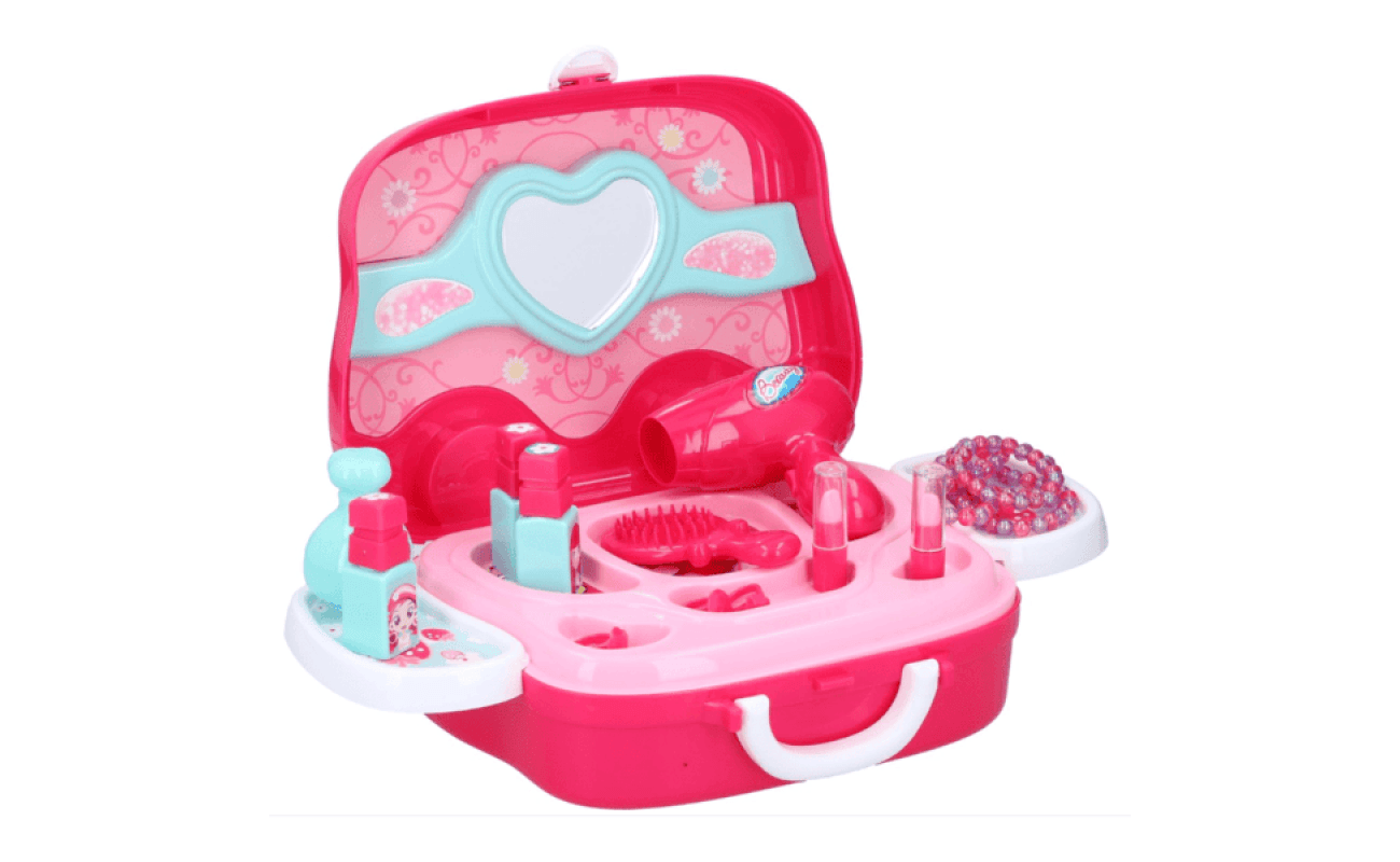 In deze handige roze beautycase zit alles om er prachtig uit te zien.