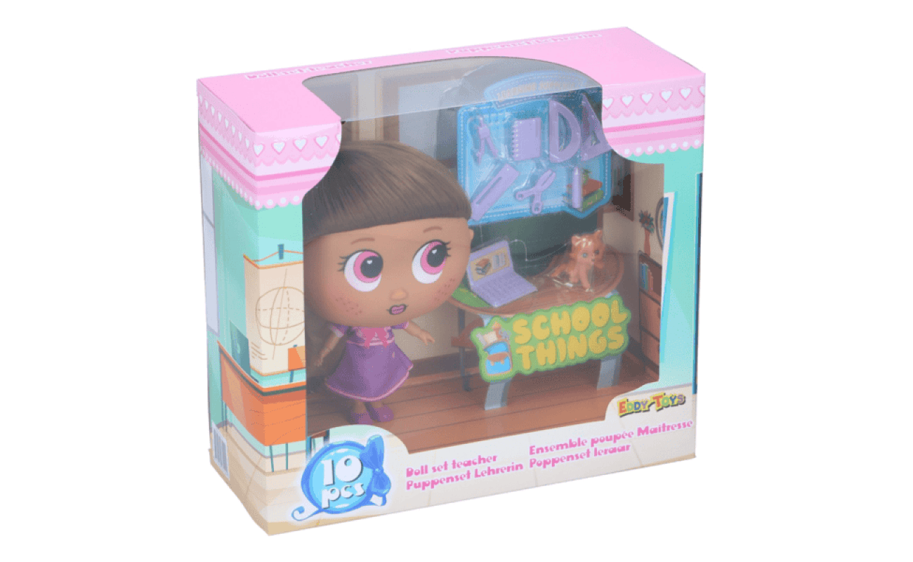 Eddy Toys Poppenset – Met Accessoires – 20x11x19cm – Schoolthema