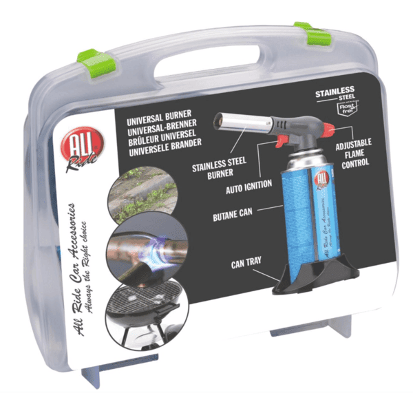 Met deze universele gasbrander van All Ride heb je altijd een oplossing voor alle problemen die vuur vereisen: de barbecue, het verbranden van onkruid of een perfect krokant laagje op je crème brulee.