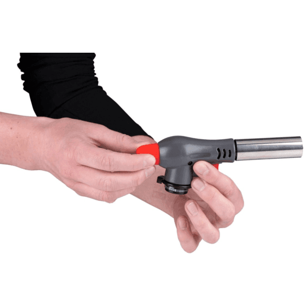 Het aansteken van de vlam is gemakkelijk, je haalt gewoon de trekker-knop aan.