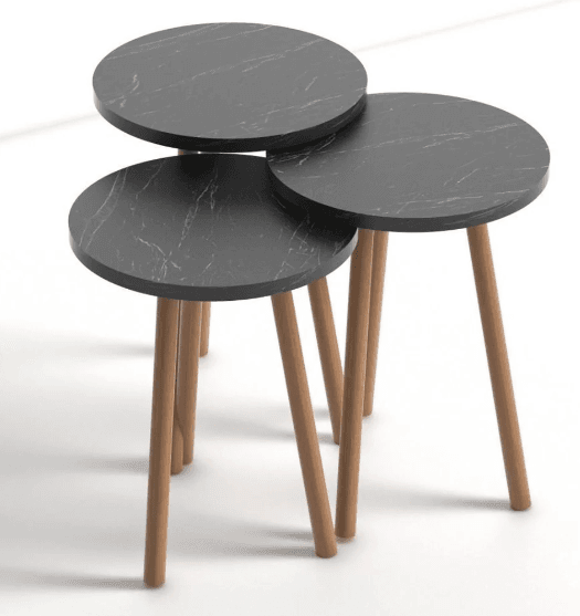 Bijzettafel Naelle set van 3 – zwart marmer design