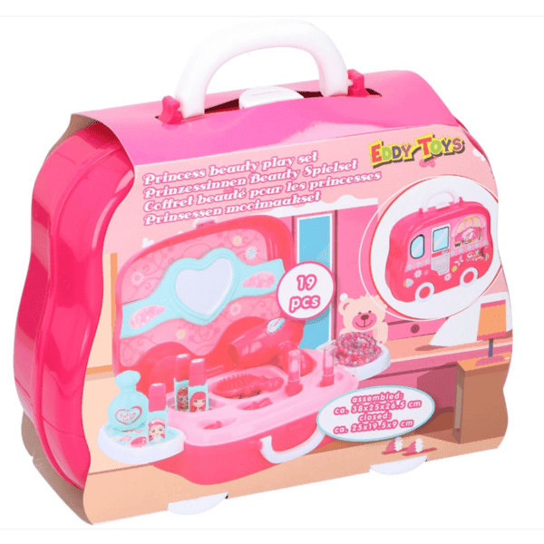 Eddy Toys Beautycase – prinsessen – 25 cm – roze – 19-delig