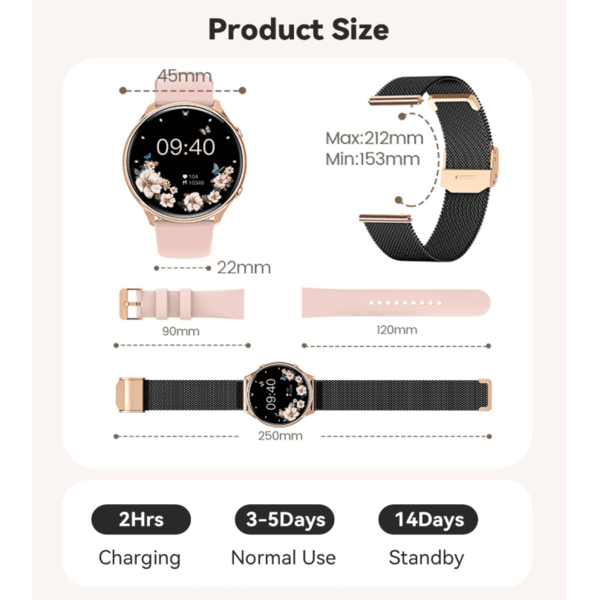 Fitonme Smartwatch voor dames 1,39″ – Kleur Zwart