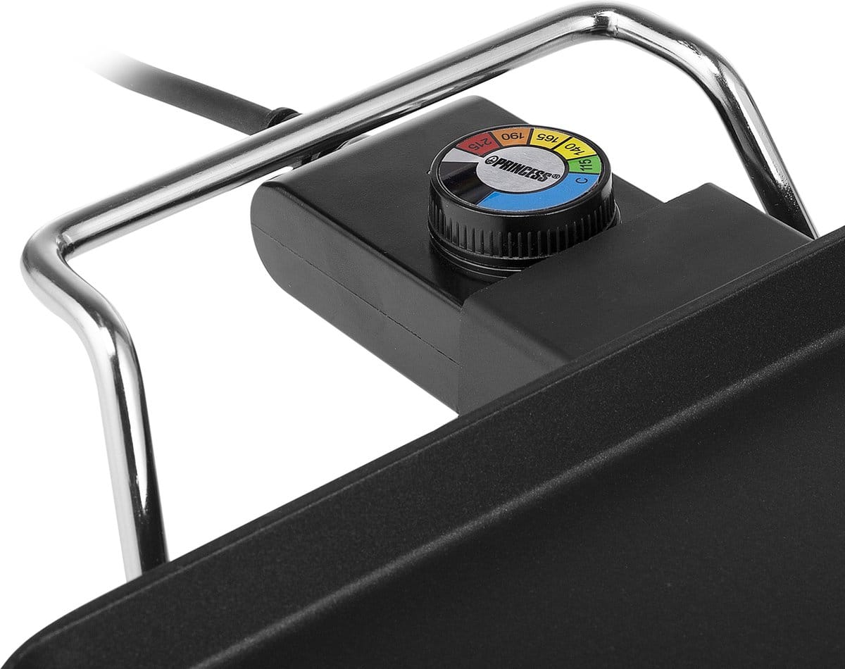 De Princess Table Chef Pro heeft een hoog vermogen van 2000 Watt waardoor de vlakke bakplaat zeer snel opwarmt. De regelbare thermostaat bevindt zich op het 0,9 meter lange, afneembare snoer zodat je makkelijk de optimale temperatuur kan instellen.