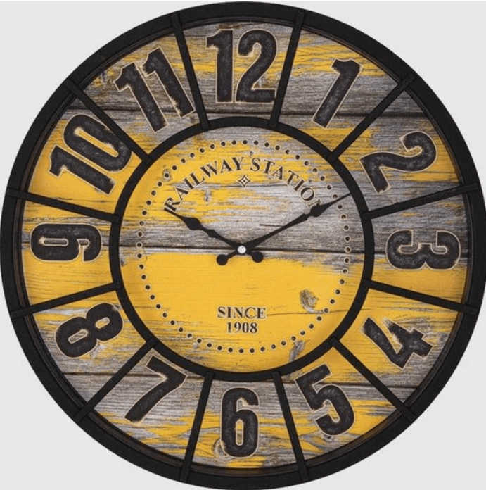 Home Wandklokken Wandklok Railway Geel/Zwart Houtlook 50 cm