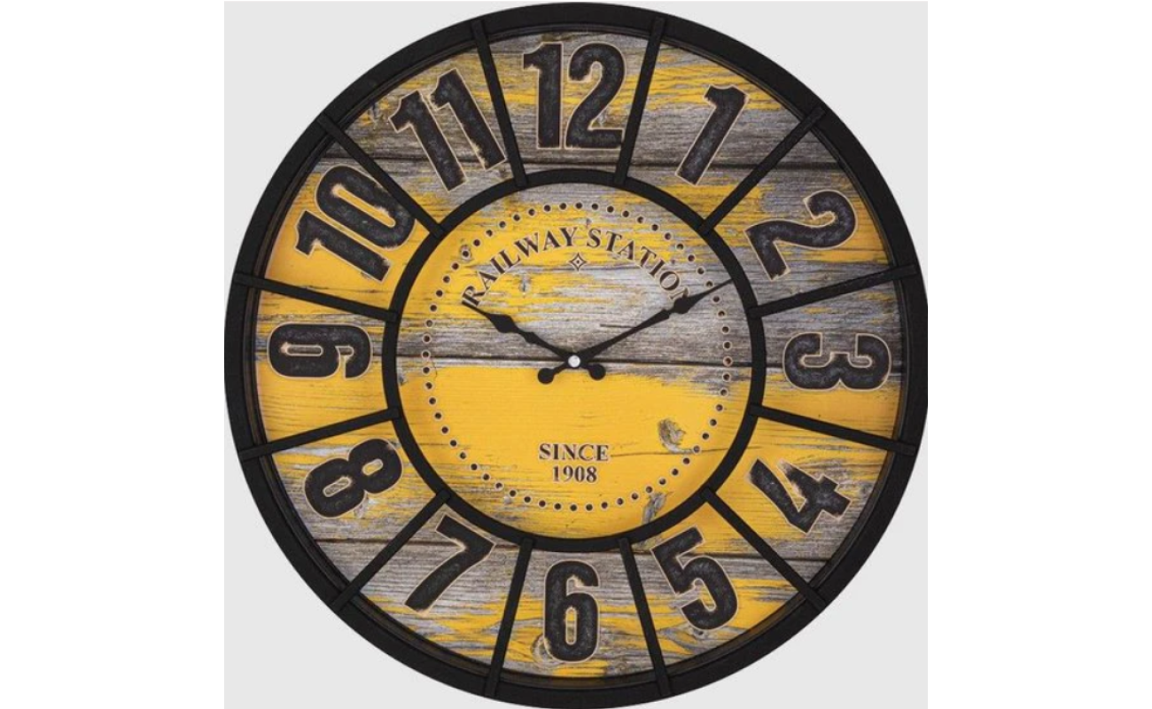 Wandklok Railway Geel/Zwart Houtlook 50 cm