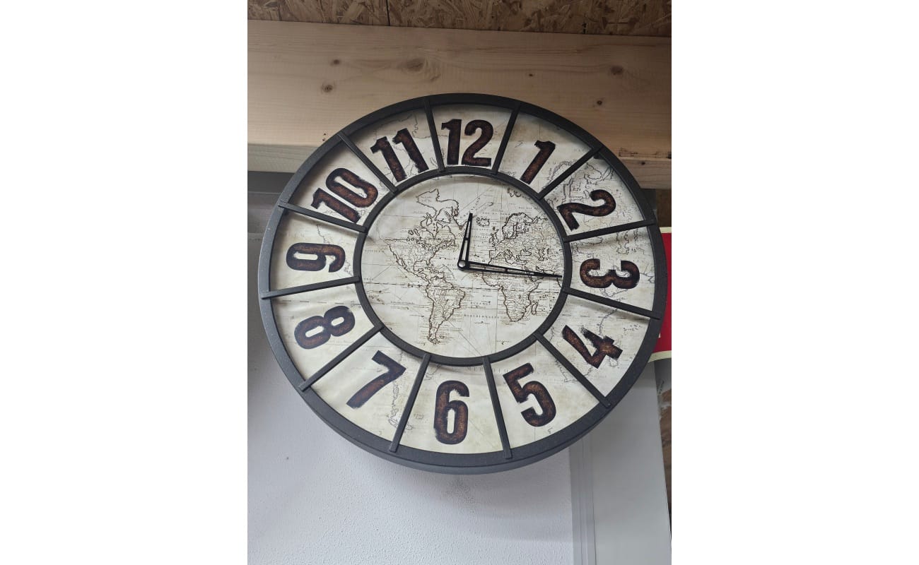 Wandklok Railway Beige/Zwart Wereldkaart Design 50 cm